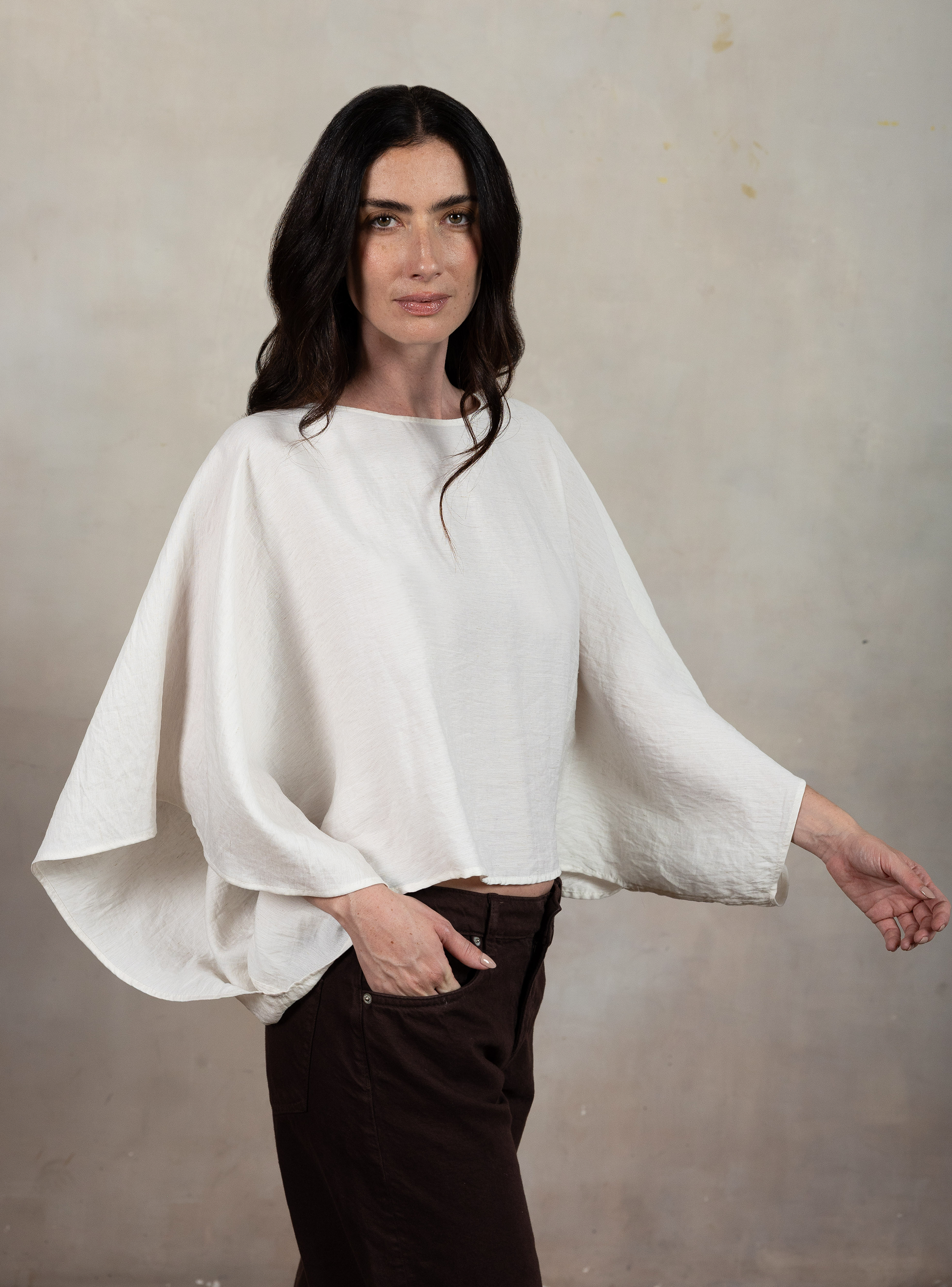 Colección Octavia. Blusa con escote barco, hombro caído y manga amplia. Sólo en Octavia.